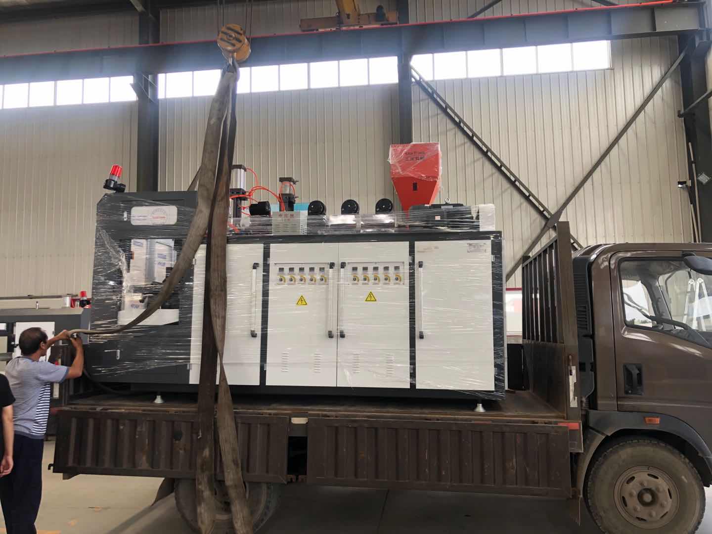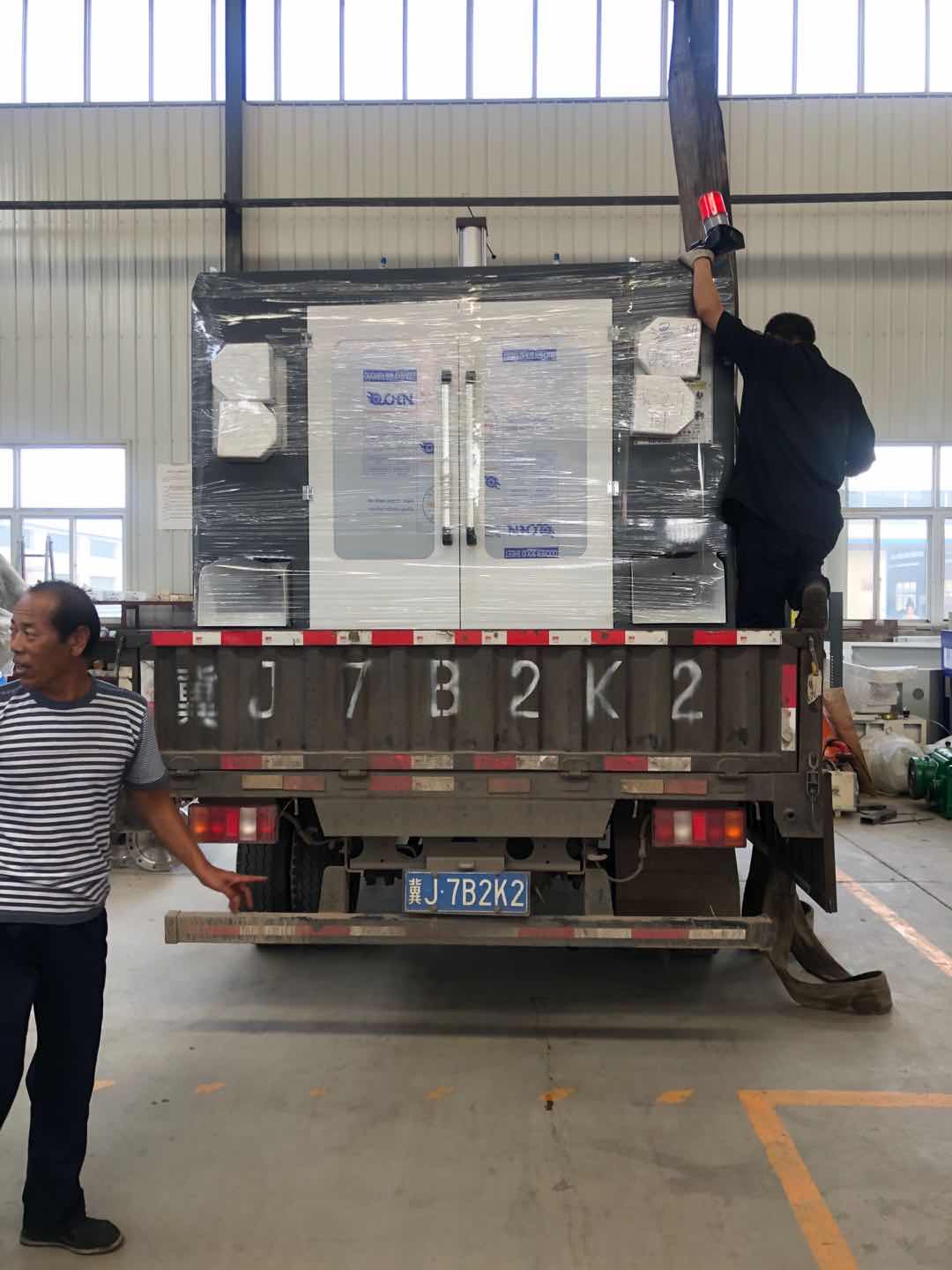 海洋球吹塑機發(fā)貨溫州,此機型是多模頭液壓合模、氣動(dòng)移模全自動(dòng)吹塑機